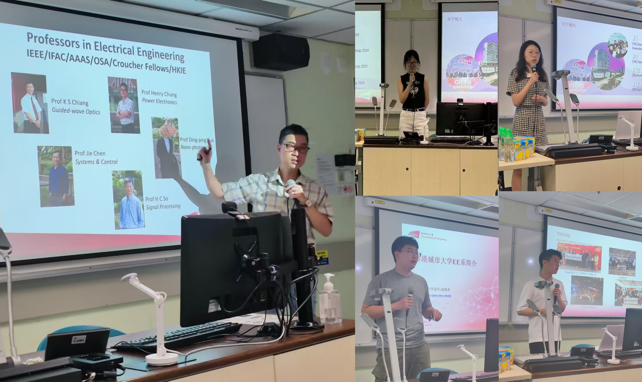 7月24日下午,师生代表团前往香港城市大学参观学习。香港城市大学工程学院副院长、电气工程系讲座教授、智能能源转换与利用研究中心主任钟树鸿教授向同学们介绍了香港城市大学工学院电机工程学系的师资团队、本科分流方式、重点研究方向以及硕士、博士招生政策等。