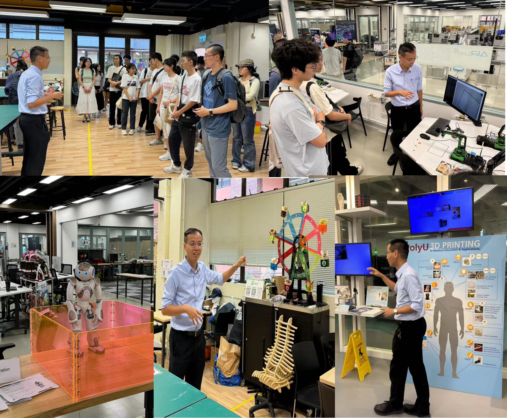 接下来,师生代表团参观了香港理工大学创新创业中心的3D打印实验室和机器人实验室。实验室老师向同学们展示了自主研发的3D打印服装、生物仿真人体器官、智能识别物品并抓取的机械臂,以及通过语音交互的智能机器人等学生作品,使同学们感受到了浓厚的学术氛围和理大学生的创新科研精神。