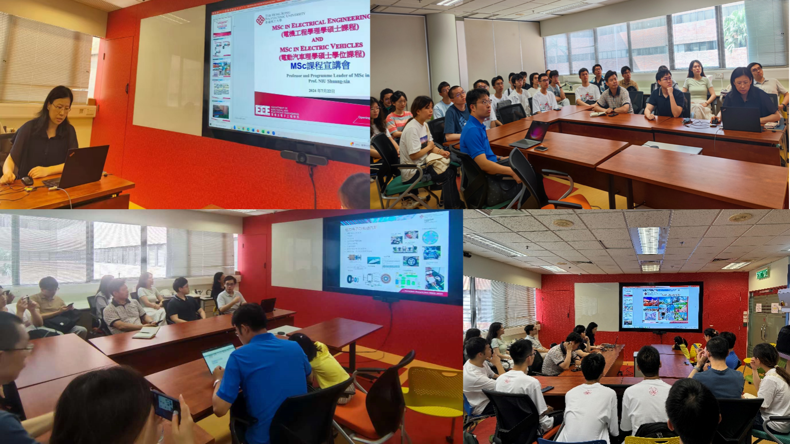 7月22日上午,师生代表团走进了香港理工大学。电机工程学系牛双霞教授向同学们介绍了学校的历史、学院分布以及硕士、博士的招生政策。电机工程学系江明远助理教授重点介绍了电机工程系的研究方向,包括电机及控制、太阳能与电动汽车,无线电能传输等。