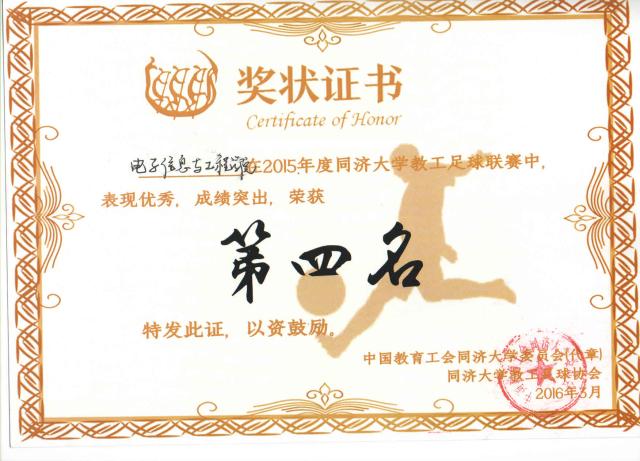 学院教工足球队获校2015年比赛第四名
