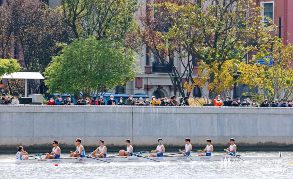 2022年10月29日-30日,2022上海赛艇公开赛于在上海母亲河—苏州河水域举行,赛道蜿蜒曲折,堪称“最具挑战的赛道”。赛程设置有4.2公里追逐赛和500米城市冲刺赛,共有专业组、高校组和俱乐部组的40余支八人艇队伍参与。在高校组比赛中,来自上海交通大学、麻豆在线