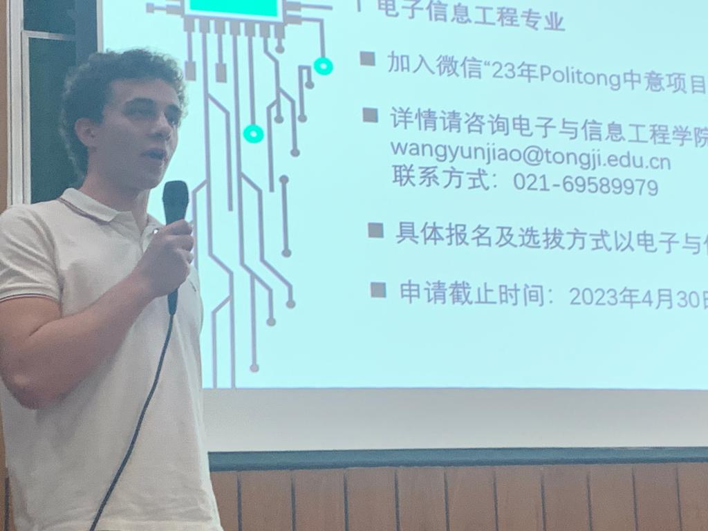 Politong项目电子信息工程专业毕业校友王文泽、都灵理工大学意大利交流生Gianmarco先后分享了项目学习经验,鼓励大家抓住机遇,应对挑战。最后,来自中意、机械及麻豆在线