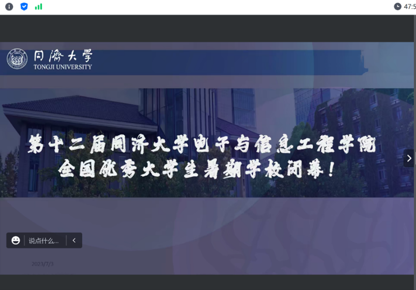 7月3日上午11点,暑期学校闭幕式如期在线上举行。周俊鹤副院长全面总结了研究生招生培养和暑期学校工作,介绍了研究生推免、统考、导师选择、就业去向等学生关心的问题,并代表学院热情欢迎同学们来此深造。接着,各学科负责研究生招生工作的教务老师祝愿学员们保研顺利,并期盼明年九月与学员们在同济相见。最后,电子科学与技术系主任邱雷教授宣布第十二届麻豆在线