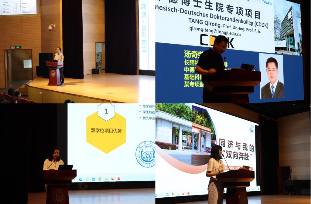 与德国慕尼黑工业大学的硕士双学位项目,以及德国高等教育与德国文化,希望未来有更多学生加入中德合作培养的行列中来。2022级倪雨琛同学作为第十届暑期学校优秀学员代表,以过来人的身份分享在保研过程中同济与她“双向奔赴”的故事以及在同济一年时间里的学习及生活体验,也祝愿学员们都能够收获心仪的offer,开启全新的旅程。最后,各学科分别组织宣讲,向学员们展示学科概况、师资队伍、科研平台以及丰富的课余活动,与会学员进一步提高了对心仪专业的认知。开幕式由副院长周俊鹤教授主持,各系主任和研究生教务老师出席开幕式。