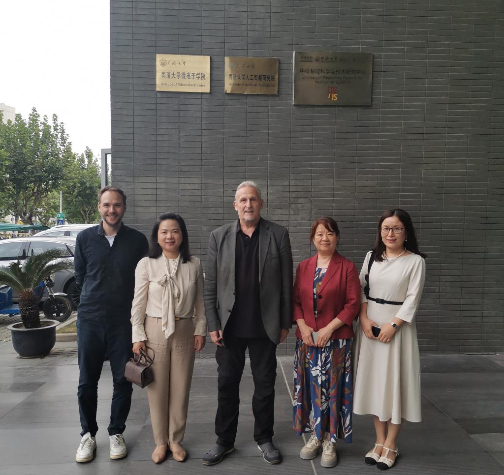 创新基地的RoboCup机器人实验室、智能汽车实验室、智能网联汽车测评基地等。参观结束后,院长陈虹与Gerhard Rigoll教授一行进行了深入的交流。