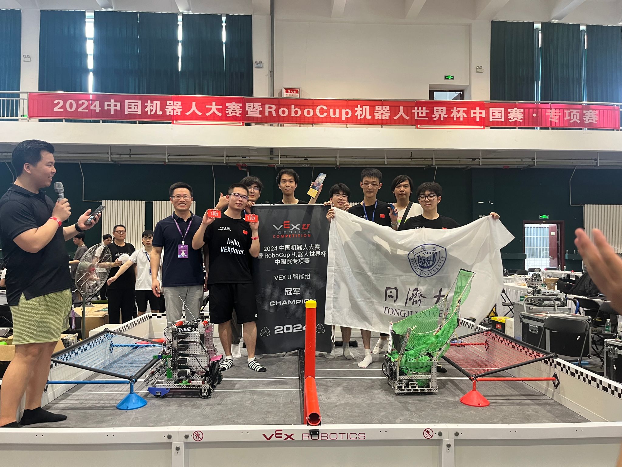 VEX团队成员们无数个日夜的辛勤付出。为了赢得此次比赛,成员们早在赛前几个月就开始了紧张的准备工作。实验室成了他们的第二个家,无论是周末还是节假日,都能看到他们忙碌的身影。从机器人结构的设计优化,到程序算法的调试完善,再到团队协作和策略制定,每一个环节都凝聚着他们的智慧和汗水。他们不断突破技术瓶颈,追求极致性能,面对各种困难和挑战,他们始终保持着高昂的斗志和坚定的信念,不断超越自我,最终取得了这一来之不易的荣誉,用实际行动诠释了“创新引领、追求卓越”的同济文化。