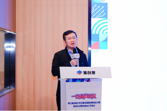 中国(上海)自由贸易试验区临港新片区管理委员会高科产业和科技创新处陈海涛表示,集成电路是临港新片区投资规模最大、产业集聚度最高、产值增长最快的产业,已形成集设计、高端制造、装备材料、先进封装、芯片贸易于一体的全产业链布局。展望下一个五年,新片区将继续推动集成电路上下游产业的发展,争取形成超千亿级的产业能级。产业的发展离不开人才,新片区高度重视产教融合的发展,第九届全国大学生集成电路创新创业大赛在临港启动,不仅是对临港新片区集成电路产业和产教融合工作的肯定,更是为深化产教融合,促进科技成果转化提供了宝贵的契机。相信大赛的举办,定能搭建起地方与高校沟通的桥梁,为临港新片区集成电路产业储备专业人才,为产业发展带来更大助力。