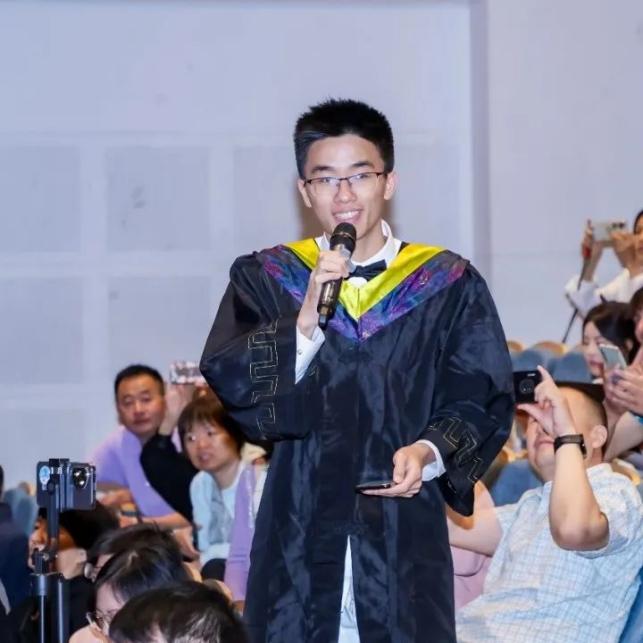 自动化专业本科生代表姚天亮在发言中表示,于他而言,大学四年是同济精神滋养的四年,是知识转化为实践能力的四年。他代表全体本科毕业生庄严承诺:未来将带着同济赋予的智慧与力量、责任与担当,努力成为国家科技自立自强征程中的奋进者、开拓者,用实干与创新书写新时代同济电信人的璀璨荣光!