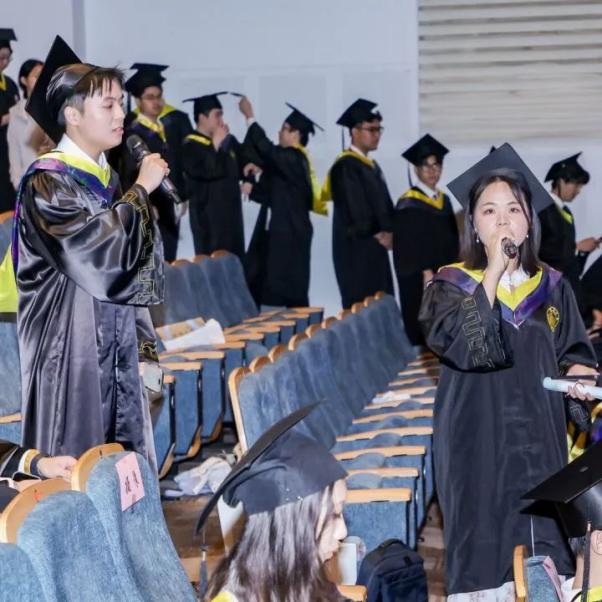 典礼的最后,毕业生代表们一起合唱。熟悉的旋律如同时光机,瞬间将所有人带回同济生活的点点滴滴。每一首歌都像一把钥匙,打开了一段专属于同济电信2025届的集体记忆。