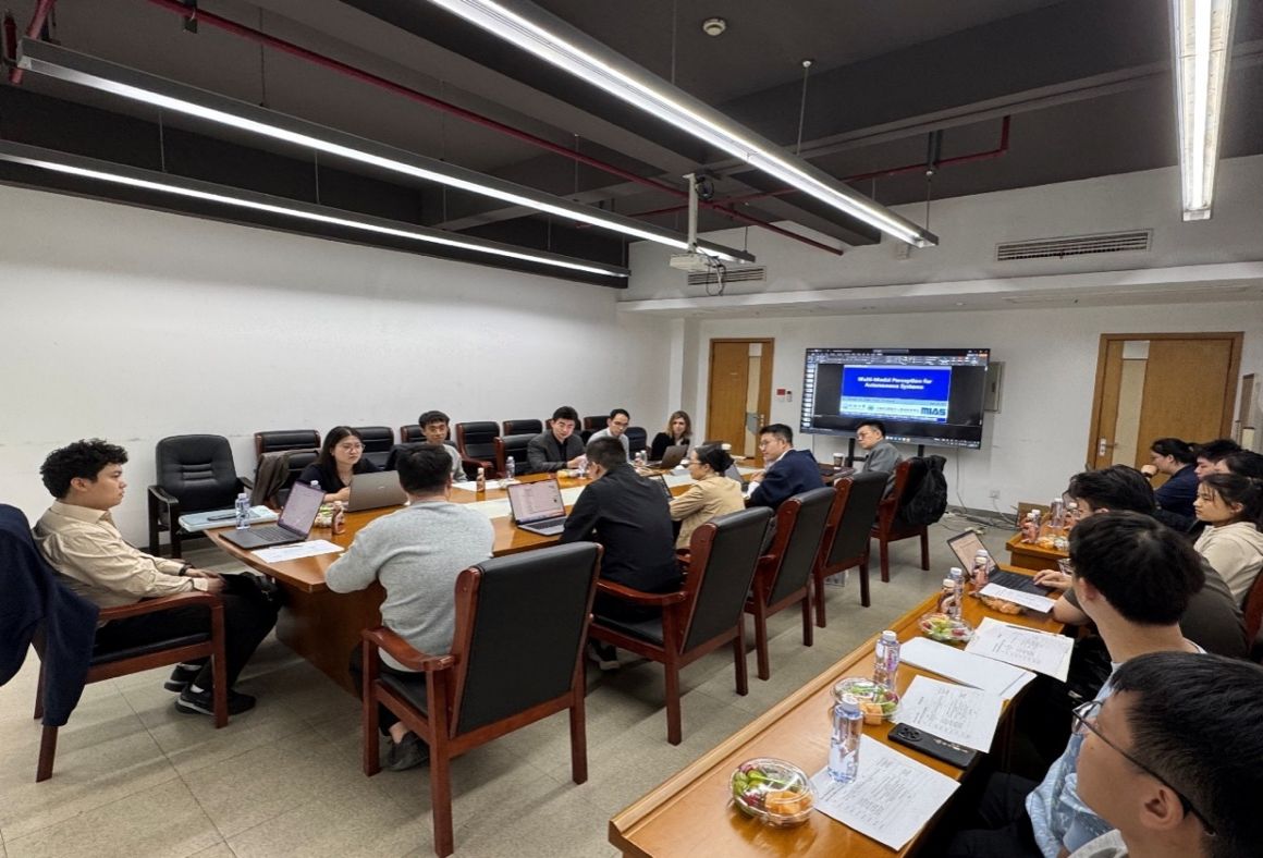 当日下午,Valentina Donzella教授团队在智信馆384室与多位青年教师开展了学术交流。控制系范睿老师、刘洋老师分别介绍了多模态感知在自主系统中的应用和具身多模态感知及其在智能交通系统中的创新实践;交通学院倪菲老师介绍了高速磁浮车轨耦合系统的状态监测技术;袁之康老师则介绍了复杂环境下电网自主巡检与状态监测的前沿进展。在随后的讨论中,双方围绕多传感器融合、智能感知系统所面临的挑战与未来机遇进行了深入交流,为双方今后在相关领域的深度合作与协同创新奠定了坚实基础。
