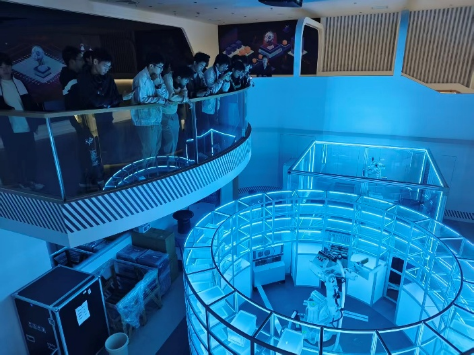 在张江机器人谷,齐鹏老师带领同学们参观了产业展示中心,详细了解了机器人谷从产业布局、创新生态到重点企业发展的整体情况。讲解人员系统介绍了机器人谷正以“智能制造产业高地”为定位,依托前沿技术导入、龙头企业带动与多层级创新配套,形成一条涵盖机器人研发、零部件制造、测试验证、商业化应用的完整生态链。齐鹏老师表示,张江机器人谷为未来智能制造人才提供了广阔的舞台,让学生在真实产业环境中感受创新动力,对于培养跨专业融合型人才具有重要意义。