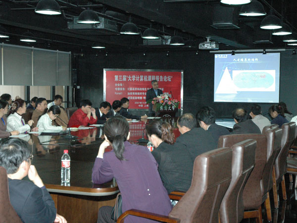 副校长李国强到会祝贺并作了热情洋溢的讲话。中国科学技术大学陈国良院士、美国电气电子工程师协会(IEEE)计算机学会前主席华云生教授、英国伯明翰大学姚新教授等应邀做了精彩的大会报告。部分专家教师、精选的论文作者就计算机基础课程与专业课程体系改革与建设,国家精品课程建设,实践教学与教学资源建设,双语课程建设,以及教学思想、方法和手段的改革与实践等,进行报告和经验交流。
