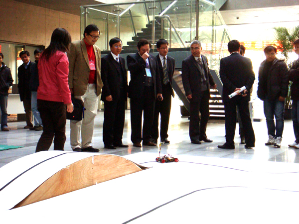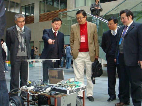 座谈会结束以后,黄教授还考察了学生参加课外活动的部分作品的介绍和演示。这些作品分别是:基于CNGI的智能交通监控管理示范系统、“龙芯”车载系统、基于以太网的工业现场测控终端、智能冰箱、四腿足球机器狗、飞思卡儿智能车、基于视觉的无人驾驶自动避障车等。(毛广山)