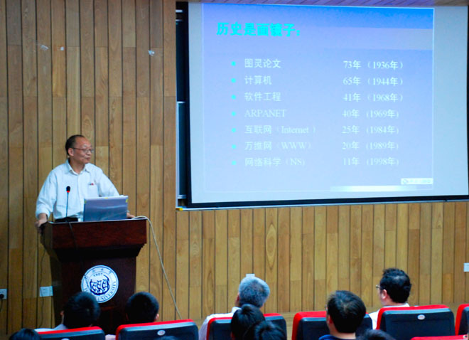 ,在学院报告厅,作了一场题为“云计算:从图灵计算到网络计算”的学术报告,受到了与会师生的热烈欢迎。