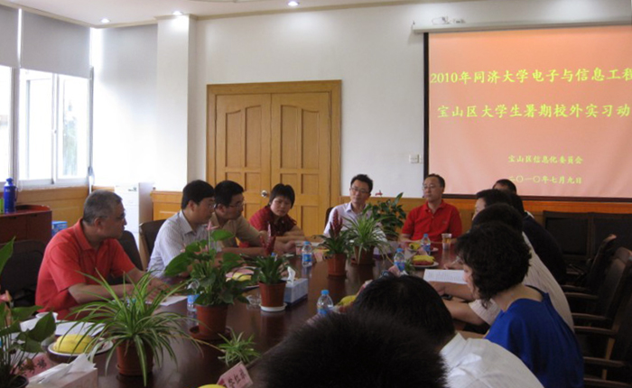 宝山校外实习基地首批暑期实习学生进驻基地仪式在宝山区信息委举行。宝山区信息委主任浦志良等领导,我校教务处副处长王晓国、实践科科长张勤,学院副院长苗夺谦、学院教务、教师代表,以及来自麻豆在线