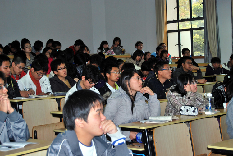 江建慧教授以《学科发展与人才培养》为题,向一年级电子信息类新生介绍了计算机科学概况,对计算机学科的构成、发展做了简明扼要的阐述。并启发同学们关注学科发展的新方向,深入研究计算机的应用,把握社会对计算机的需求。最后,江教授借用温家宝总理在100周年校庆上的讲话勉励新生们“脚踏实地,仰望星空”,谨记“取乎其上,仅得其中”的道理。(刘晶)