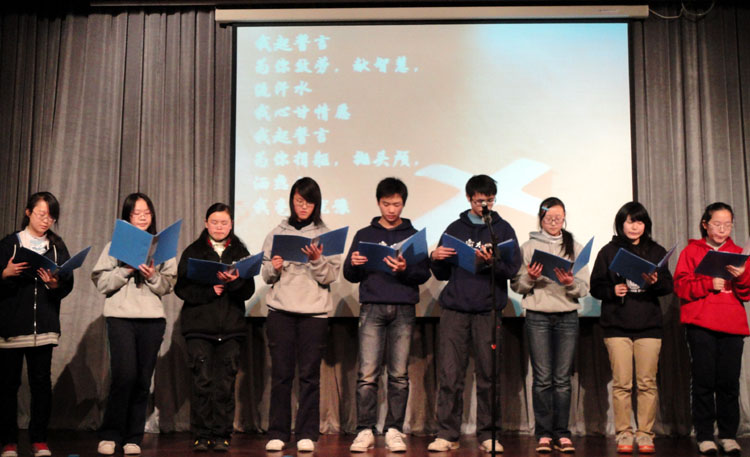 志愿者还奉上了精彩的文艺表演――诗朗诵《雪落在中国的土地上》和《可爱的中国》,展现了志愿者们的青春热情和爱国情怀。(程 莉 郭佳佳)