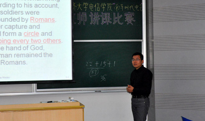 电信学院“南车时代电气杯”青年教师讲课竞赛在嘉定校区举行。各系共选出19位青年教师参加了比赛。