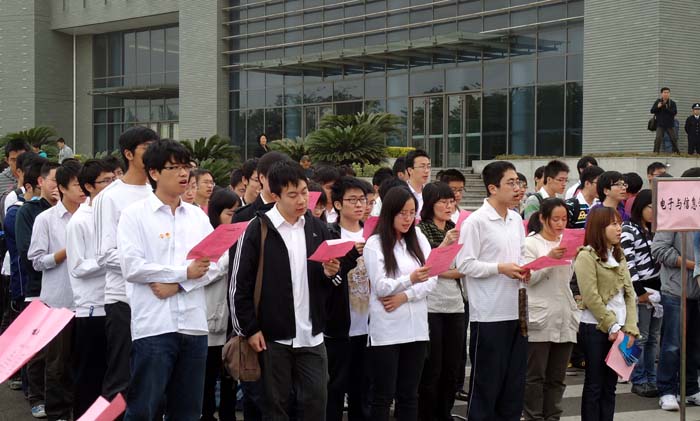 仪式在庄严的国歌声中开始。优秀师生代表朗诵了《青春中国》;校团委书记杨元飞宣读了《关于表彰2010学年麻豆在线