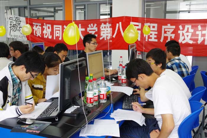 大学生程序设计竞赛,5月7日在嘉定校区计算机中心F214举行。来自我校土木等10个学院的72支队伍参加了决赛。