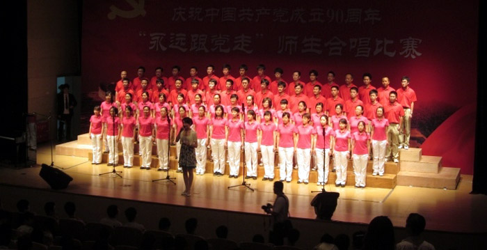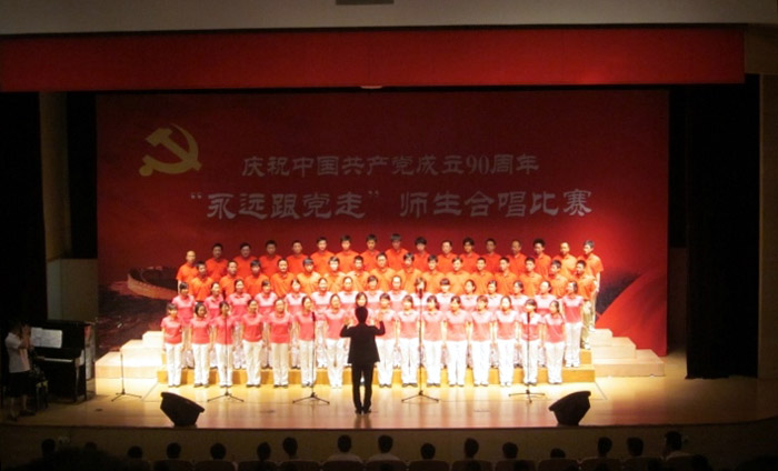 师生对党的感情;充满激情的歌声,唱出了全院师生对党九十岁生日祝贺的心声。(刘 峰)
