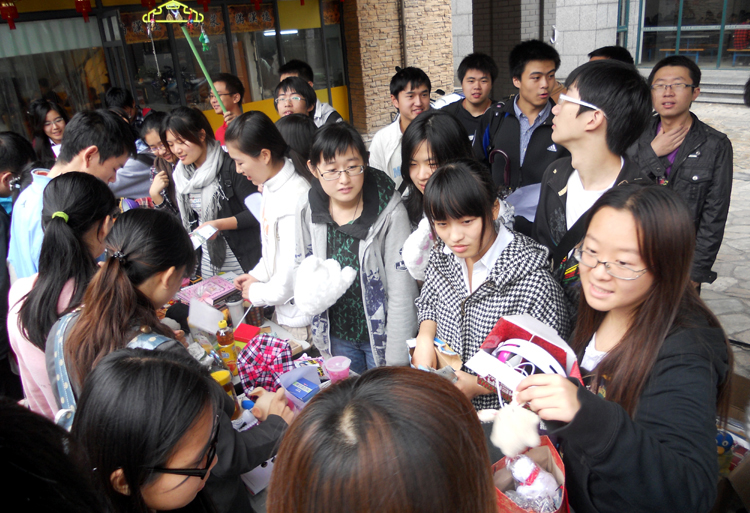 大学生志愿服务中心分别在四平路校区南大道和嘉定校区嘉实商业街,举行了为期三天的“爱心在笑脸中传递”的爱心义卖活动。