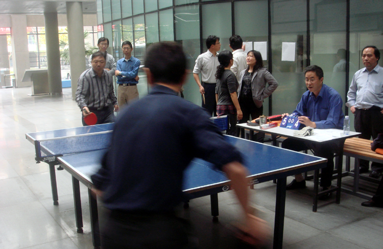 一年一度的教工乒乓球团体赛,11月15日下午在学院大楼底楼大厅降下帷幕。为吸引更多的教工参与比赛,本届“电信―信通”杯教工乒乓球团体赛,根据教工技术水平分为A、B两个等级比赛,每队由两男一女组成。