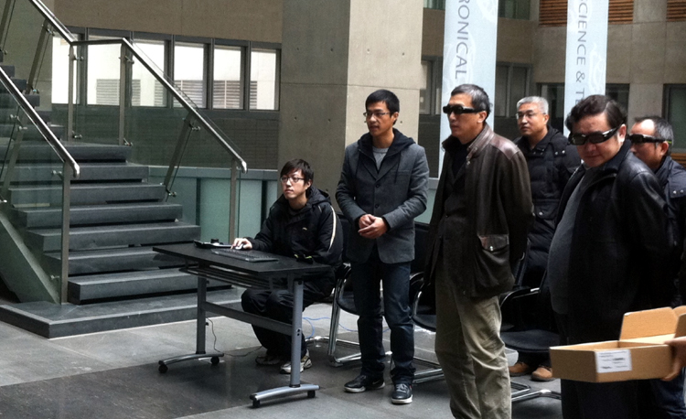 先后察看了嵌入式系统教育部重点实验室的虚拟现实平台、交通信息服务网格平台、云计算平台、脑机交互康复设备等。