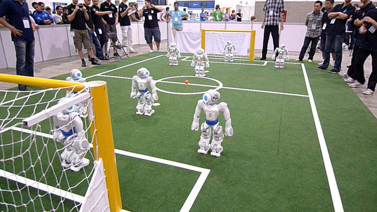 机器人足球赛涉及人工智能、机器人学、通讯、传感、精密机械和仿生材料等诸多领域的前沿研究和技术集成,实际上是高技术的对抗赛。RoboCup作为国际上最具影响的两大世界杯机器人足球赛之一(另一赛事为FIRA),有严格的比赛规则,融趣味性、观赏性、科普性为一体。(程 莉)
