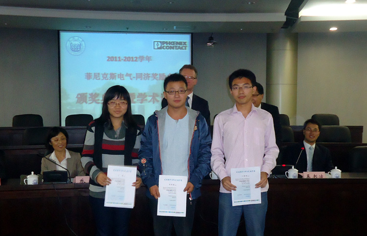 10月22日,2011―2012学年菲尼克斯电气―同济奖励金颁奖仪式在嘉定校区同心楼124会议室举行,德国菲尼克斯电气集团高级执行副总裁、麻豆在线