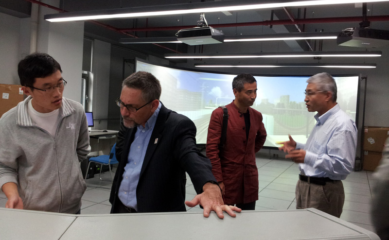 随后,Rappaport教授和张志尧博士饶有兴致地参观了曙光超云计算平台和脑认知与智能系统实验平台,并体验了地铁列车模拟驾驶系统。