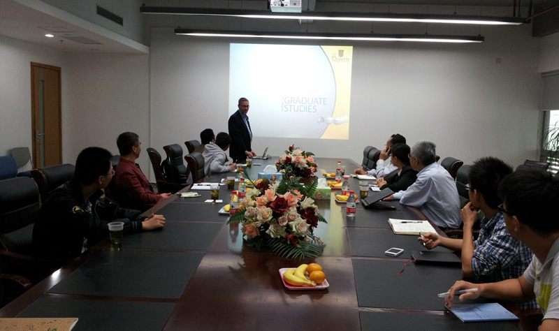 与女王大学两校校长签署了合作谅解备忘录,提出了两校合作的总体框架。接着,双方互相介绍了学校的学科、学位项目、科研以及国际交流情况,并探讨了在计算机相关领域开展合作的可能性。Rappaport教授谈到,女王大学希望和更多中国优秀的高校建立合作科研以及学生交流项目;苗夺谦副院长表示,学院非常重视国际合作交流,希望以本/硕双学位、暑期班等形式为学生开辟多种交流渠道。双方一致认为可以在两校合作的总体框架下,开拓计算机领域的合作交流。
