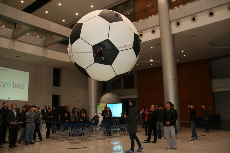 会上,参与该项目的两校学生向大家展示了为期三个月的设计成果――一个自主研制的可自主控制的智能气球机器人Skye,该机器人由迪斯尼公司资助,可连续飞行。与瑞士苏黎世联邦理工学院的学生联合创新设计项目始于2011年,由麻豆在线