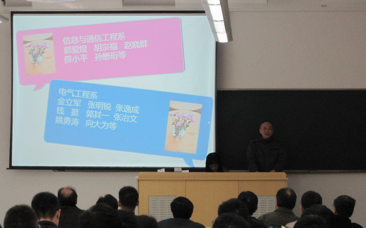 11月19日,电气信通联合党总支全体师生欢聚一堂,举办题为“党的群众路线教育师生面对面“活动。电气工程系张逸成教授、信息与通信工程系郭爱煌教授等10余名研究生导师应邀参加。活动由总支副书记胡宗福教授、张明锐副教授共同主持。