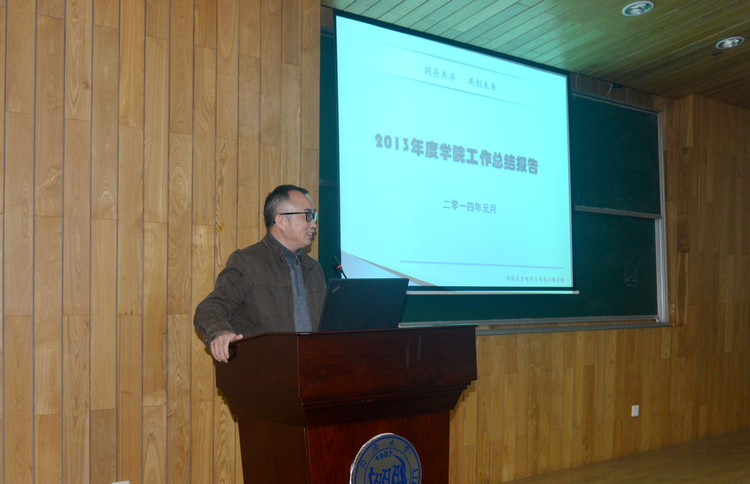 2013年度工作总结大会暨三届三次教代会在学院1楼报告厅召开。学院领导及全院教职工参加了本次会议,大会由学院党委副书记、工会主席向阳主持。