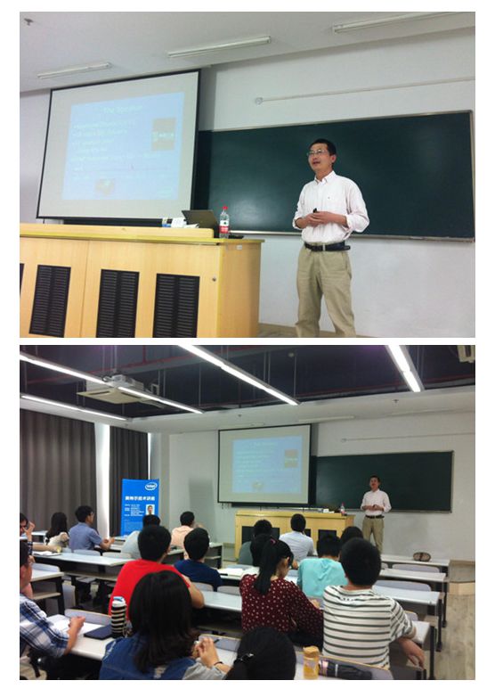 计算机科学与技术系邀请,Intel亚太研发中心资深工程师张银奎(Raymond Zhang)于5月22日下午在嘉定校区综B216为计算机科学与技术系研究生、本科生做了题为“揭开图形学的神秘面纱”的学术讲座,深入剖析了GPU(图形处理单元)软件架构体系的功能和应用,最新计算机体系架构下GPU的内核极其对上层应用的驱动原理,讲座期间同学们和Intel工程师积极互动,气氛热烈。