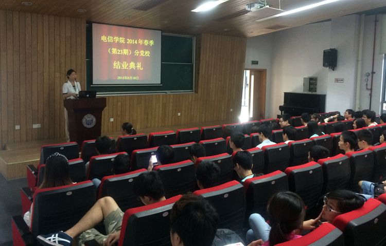 分党校在嘉定校区电信楼117报告厅召开2014年春季(第23期)入党积极分子培训班结业典礼,学院党委副书记、分党校常务副校长董变林、党校教学秘书陆凤兰参加,会议由学生党总支副书记王晶晶主持。