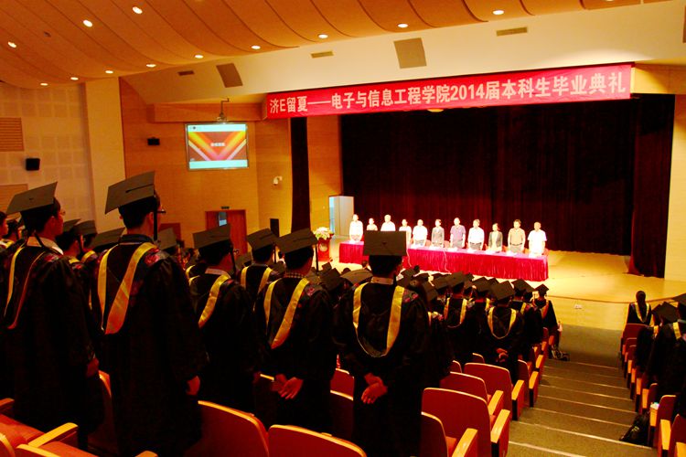 “济E留夏”2014届本科生毕业典礼在嘉定校区济人楼101报告厅举行。校党委副书记马锦明、学生处处长祁明、校团委副书记崔莹,学院相关领导、教师代表、家长代表以及476名应届毕业生出席了毕业典礼。大会由学院党委书记童学锋主持。