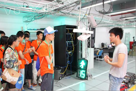 “虚拟仿真平台”、“无人车赛道监管平台”、“嵌入式视频监控平台”、“可信监控电子交易平台”、“脑认知研究平台”等重点实验室。营员们对重点实验室中展示的新技术十分好奇,并在讲解员的介绍下,对这些技术产生了浓厚的兴趣。