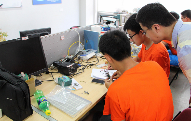 下午,营员们来到了电子设计实验室,在志愿者的讲解下,初步了解了电子设计的基本知识,学习了无线电力传输系统,动手设计并连接电路,通过微型无线电力传输系统模型,成功点亮了红色发光二级管,体验了动手实践的快乐。