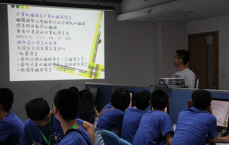 16日下午,营员们参观了嘉定校区的图书馆、新能源汽车实验基地、生态农庄、磁悬浮试验线等。之后,营员们来到了机房,在志愿者的指导下学习了程序设计语言的一些基本知识,并亲自动手编程。从最初对编写程序的懵懵懂懂,到亲自实现了简易程序的编写,营员们纷纷表示“很有成就感”。