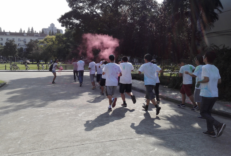团学联组织的“嘉缘十年,E彩纷呈”Color Run 环校园彩色跑活动在四平路校区和嘉定校区同时举行,吸引了上百名学生火热参与。