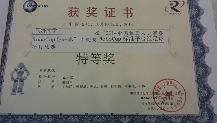 陈启军教授指导,学生组成的TJArk代表队以绝对优势成功卫冕标准平台组冠军。