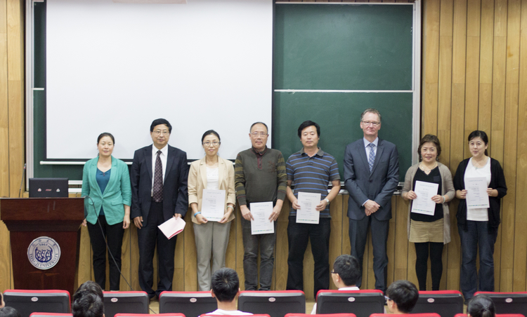 颁奖仪式后,Roland Bent为大家作了精彩的学术报告《Smart Production of the Future》。Bent先生从数字世界已经来到了车间、未来的工业生产应该什么样、第四次工业革命已经开始、第四次工业革命的发展蓝图等四个方面详细深入地阐述了未来智能生产的蓝图。在报告中,Bent先生向我们展示了三维一体化、增值链横向一体化、垂直业务流程一体化、生命周期一体化的未来工业生产的愿景,并以图文形式讲述了第四次工业革命代表着什么,可以给生产生活带来哪些变化。报告内容深入浅出,参会师生表示受益匪浅。