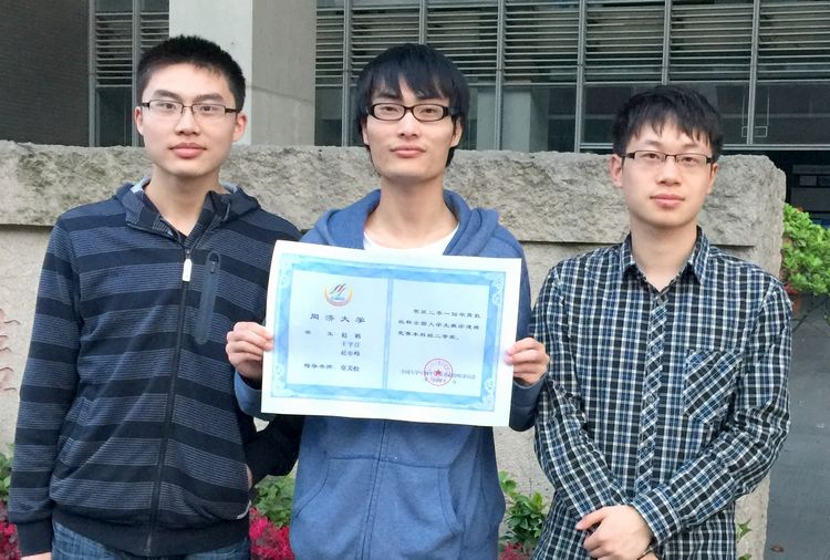 赵鹏同学的参赛组包括来自不同系的本科生王宇江和赵亦峰同学,事先在童美松教授的精心指导下进行了充分的练习与准备,最后经过三天三夜的紧张比赛成功地完成了比赛任务并按时提交了论文。他们按照赛题要求提交的论文是“创意平板折叠桌最优设计加工参数的分析”,论文基于平板折叠桌的空间几何信息建立了一个离散的折叠桌空间结构模型并应用遗传算法对设计目标函数进行非线性约束最优化求解,最终获得最佳设计参数。赵鹏同学的参赛组是麻豆在线