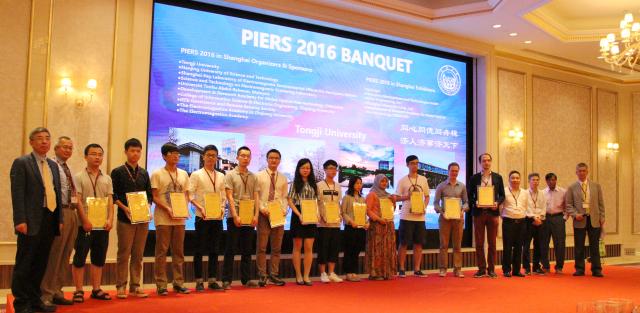 电子科学与技术系2014级硕士研究生陈文杰受邀参加在上海举办的国际著名学术会议“The 37th Progress in Electromagnetics Research Symposium (PIERS)”(第37届电磁学研究进展国际研讨会)”, 她在专门设置的“Competition for the Best Papers of Students(学生最佳论文竞赛)”分会场作了题为“Time-Domain Analysis for Transient Electromagnetic Scattering by Conducting-dielectric Objects(导体介质混合体的瞬态电磁散射时域分析)”的口头报告,受到竞赛评委和听众的好评,事后被多位国际著名教授誉为“interesting work”及“excellent job”。该论文是陈文杰同学在系主任童美松教授精心指导下完成并在今年三月份投稿、四月份正式接受的。论文内容事先经过三位专家盲审,入围后再由第一作者(学生)在分会场作口头报告,评委由四名相关领域的国际著名学者担任,他们根据论文内容盲审结果和现场口头报告及答辩质量进行打分评审,最终该论文被评为最佳学生论文奖第二名并在颁奖晚宴上授奖。
