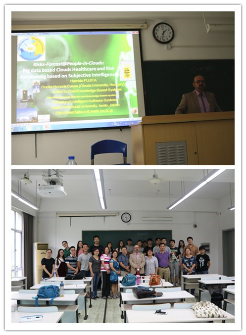 苗夺谦教授邀请,国际SCI著名期刊Knowledge-Based Systems主编、日本岩手県立大学智能软件系统系主任 Hamido Fujita教授来到嘉定校区,在诚楼C108作了题为“Big data based Clouds Healthcare and Risk Forecasting based on Subjective Intelligence”的学术报告。这也是计算机科学与技术系智信讲坛第48期内容。