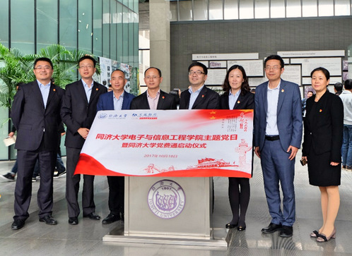 党委副书记董変林主持,交通银行上海市分行组织部副部长苗俊华、交通银行上海杨浦支行行长陈德、我校党委组织部部长冯身洪、党委组织部副部长王峻以及麻豆在线
