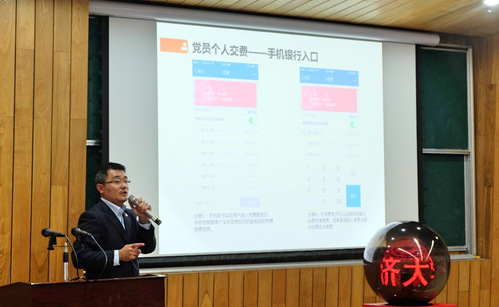 党费通正式启用。与会党员现场拿起手机,在交通银行上海同济支行窦丰雷行长的演示下,在党费通平台交纳了本人的当月党费。