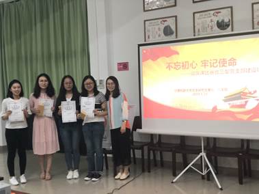 电信学院计算机联合党总支研究生第七支部、第八支部联合举办的“不忘初心,牢记使命”微党课比赛在友园7、8号楼党建活动室顺利开展,共有23名党员参加了此次比赛。并特邀计算机联合党总支副书记张砚秋老师、研究生班主任曹建平老师,及新辅导员汤若琦老师担任比赛评委。